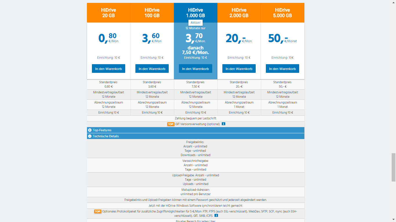 Dieses Special bietet nur Webinterface + Zugriff über die HiDrive Windows Software.