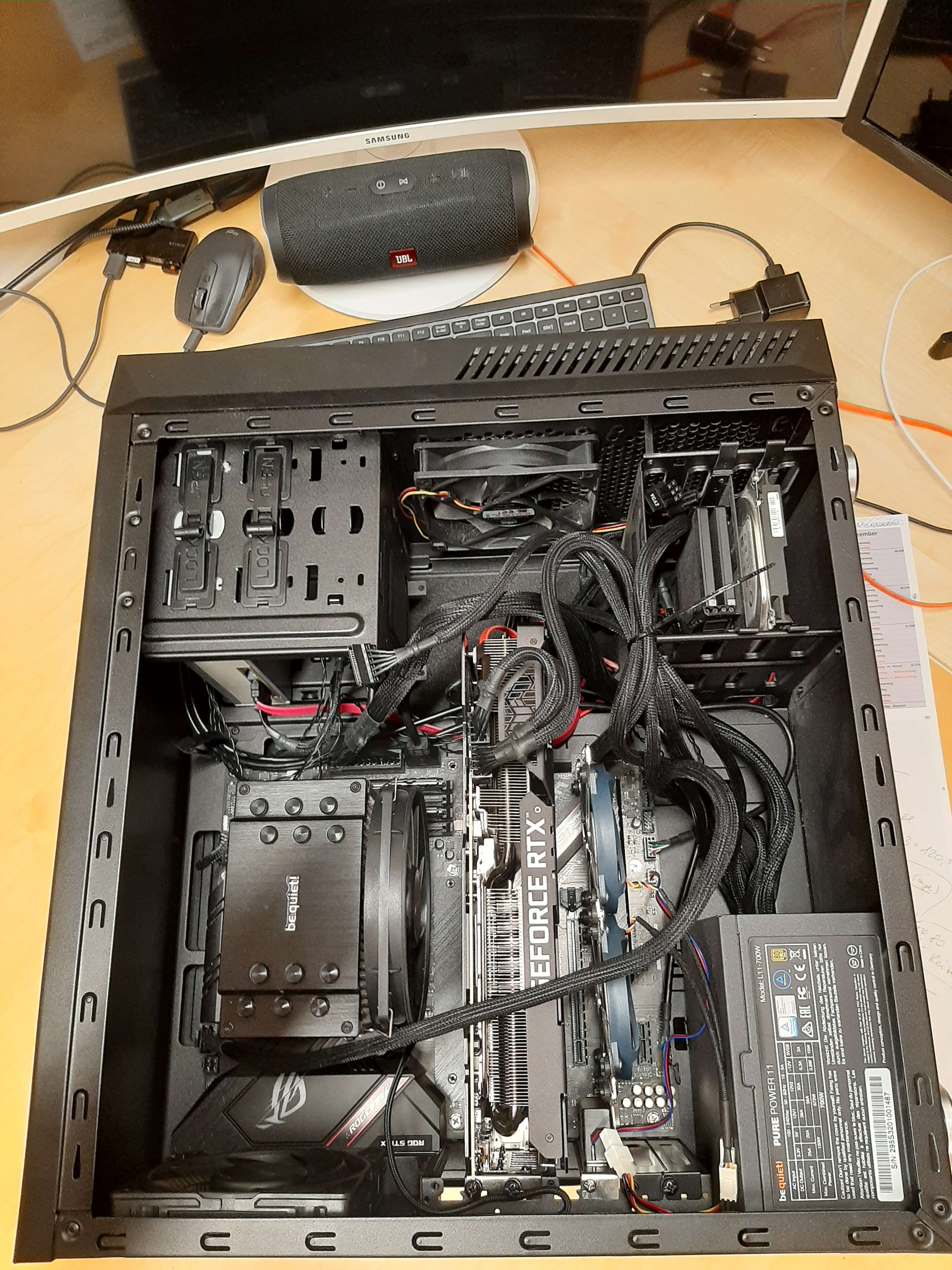 Da die 3070ti gut Wärme produziert, habe ich den hecklüfter ausgetauscht gegen den silent wings pro 4 (vorher war wie vorne ein cooler master lüfter drin).