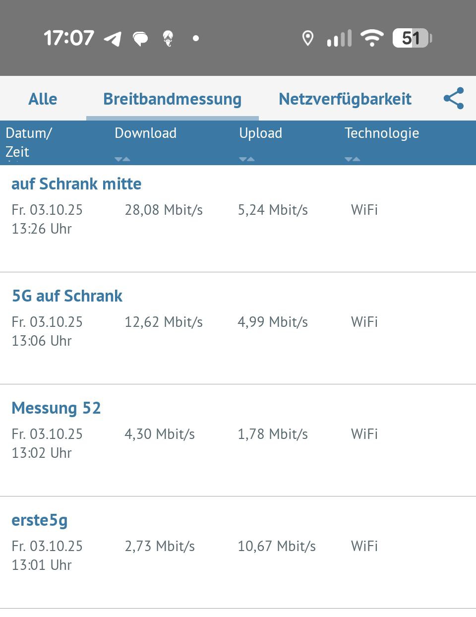 Aus den Speedtests lassen sich leider nicht wirklich aussagekräftige Schlüsse gewinnen, da die Geschwindigkeiten während des Tests zu stark variiert haben (je nach dem mit welcher Zelle sich die Router gerade verbunden hatten).