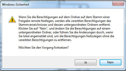 Wenn Sie die Berechtigung auf dem Ordner auf dem Stamm einer Freigabe remote festlegen, werden alle vererbten...."