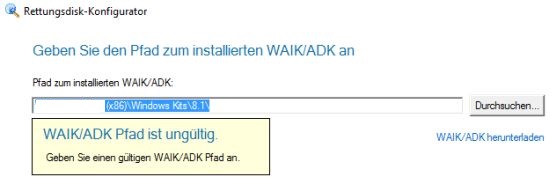 Rettungsdienst Konfigurator -> ADK/WAIK verwenden -> Microsoft Windows PE -> Wechseldatenträger (Angewählt mein USB-Stick). Die Sicherheitsfrage bejaht. Nun erscheint die Meldung "Geben Sie den Pfad zum installierten WAIK/ADK an. Wenn ich nun mit der vorgegebenen Pfad auf weiter klicke, erscheint die Meldung "WAIK/ADK Pfad ungültig". Direkt neben dem Pfad ist die Möglichkeit "WAIK/ADK herunterladen" Option. Diese Option leitet mich allerdings auf die ADK Seite von MS für Win 8.1 Update. Ich habe auch die Version für Windows 10 gefunden, nur hat mich die Größe der herunterzuladenden Datei etwas verwirt: "Geschätzte erforderlicher Speicherplatz 6,5 GB".