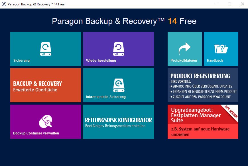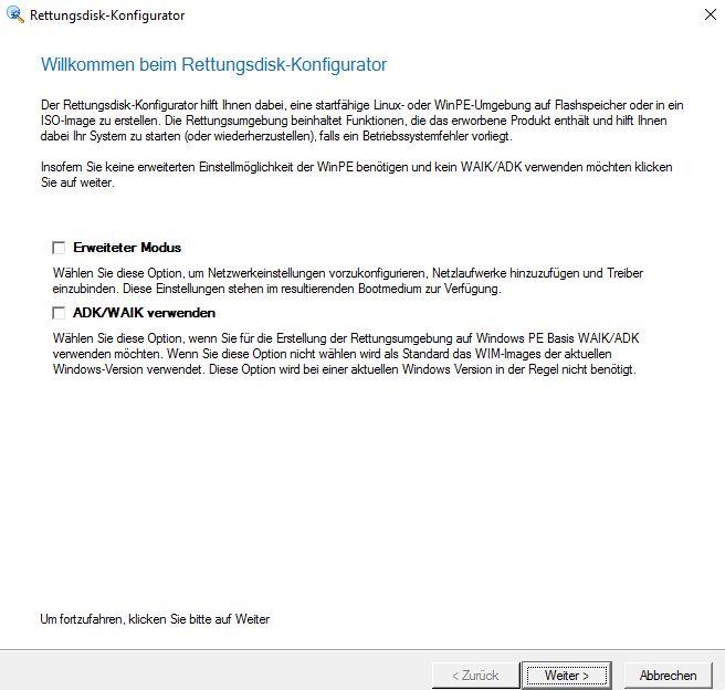 bin gerade dabei mein System zu sichern und möchte mit Paragon Backup Recovery 14 Free ein Rettungsmedium unter Win 10 prof 64 Bit erstellen. Ich gehe wie folgt vor: