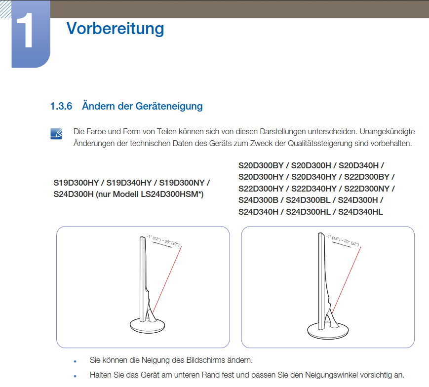 Ich habe mir den S24D300 gekauft und bin auch eigendlich zu frieden. Aber ich weiß nicht, wie er ein bißchen nach hinten Neigen geht.