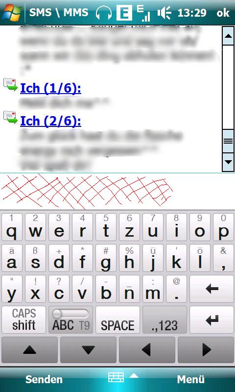 wenn ich unter windows mobile eine unterhaltung geöffnet habe und zurückschreiben will, dann ist das fenster, wo ich die nachricht schreibe lediglich 2 zeilen hoch. das fenster, wo die alten nachrichten stehrn ist aber zu groß. weiß jemand wie ich das (im bild schraffierte) fenster vergrößern kann? danke für evtl tipps