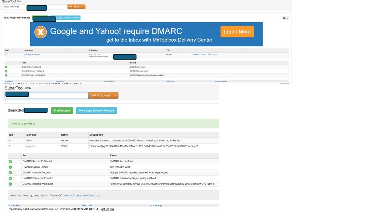 Hat jemand evtl. einen Tipp was ich falsch gemacht habe oder ob noch etwas fehlt ? Bin in diesem ganzen Thema ein ziemlicher Anfänger und habe die Domain nur für die EMails erstellt und dann nie mehr angefasst.