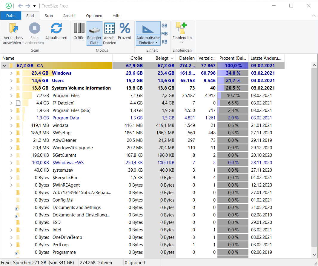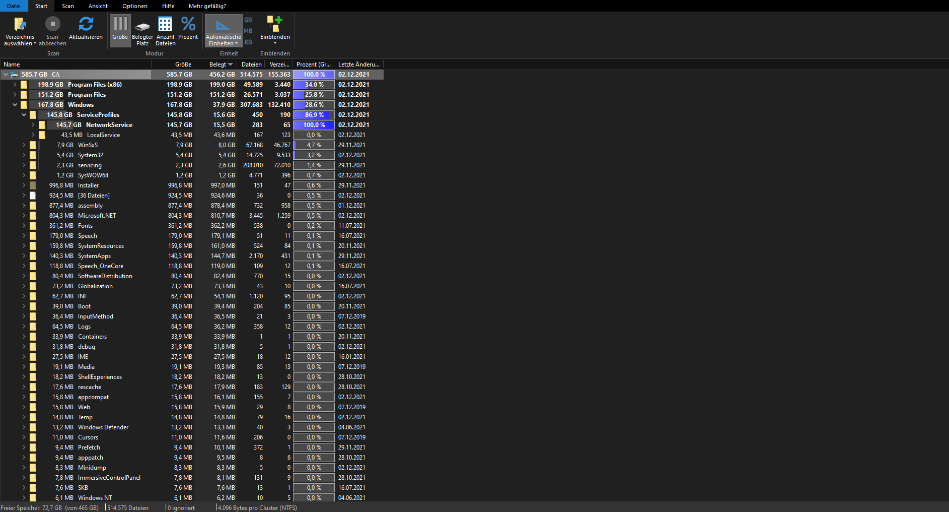 Windows mit 167,7 GB ist doch auch nicht normal. Was ist denn da in den Windows Ordner alles rein installiert worden?
