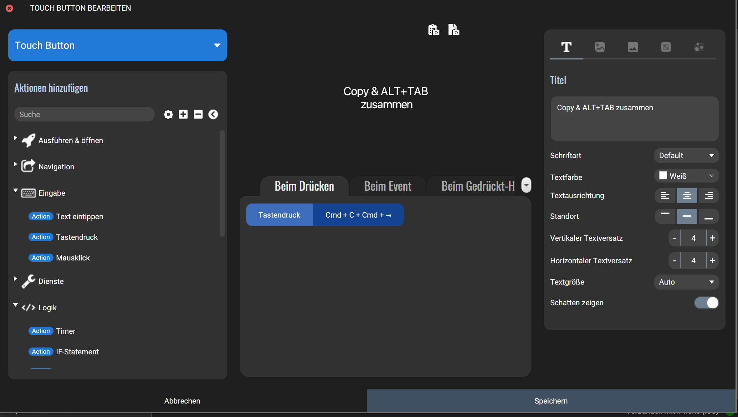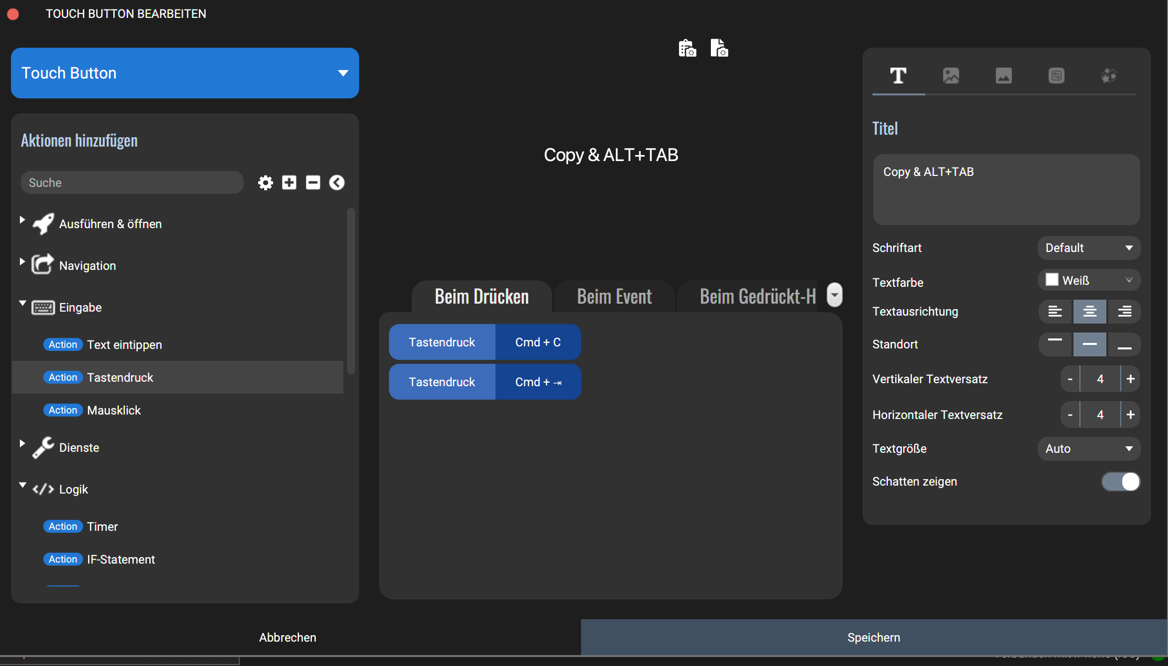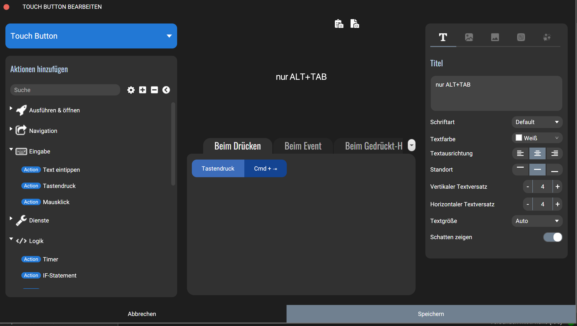 Speichere ich einfach nur ein Makro "ALT + TAB" auf und führe das Makro über die Softwareoberfläche auf meinem Handy aus, dann wird auf meinem Macbook auch ALT+TAB ausgeführt.