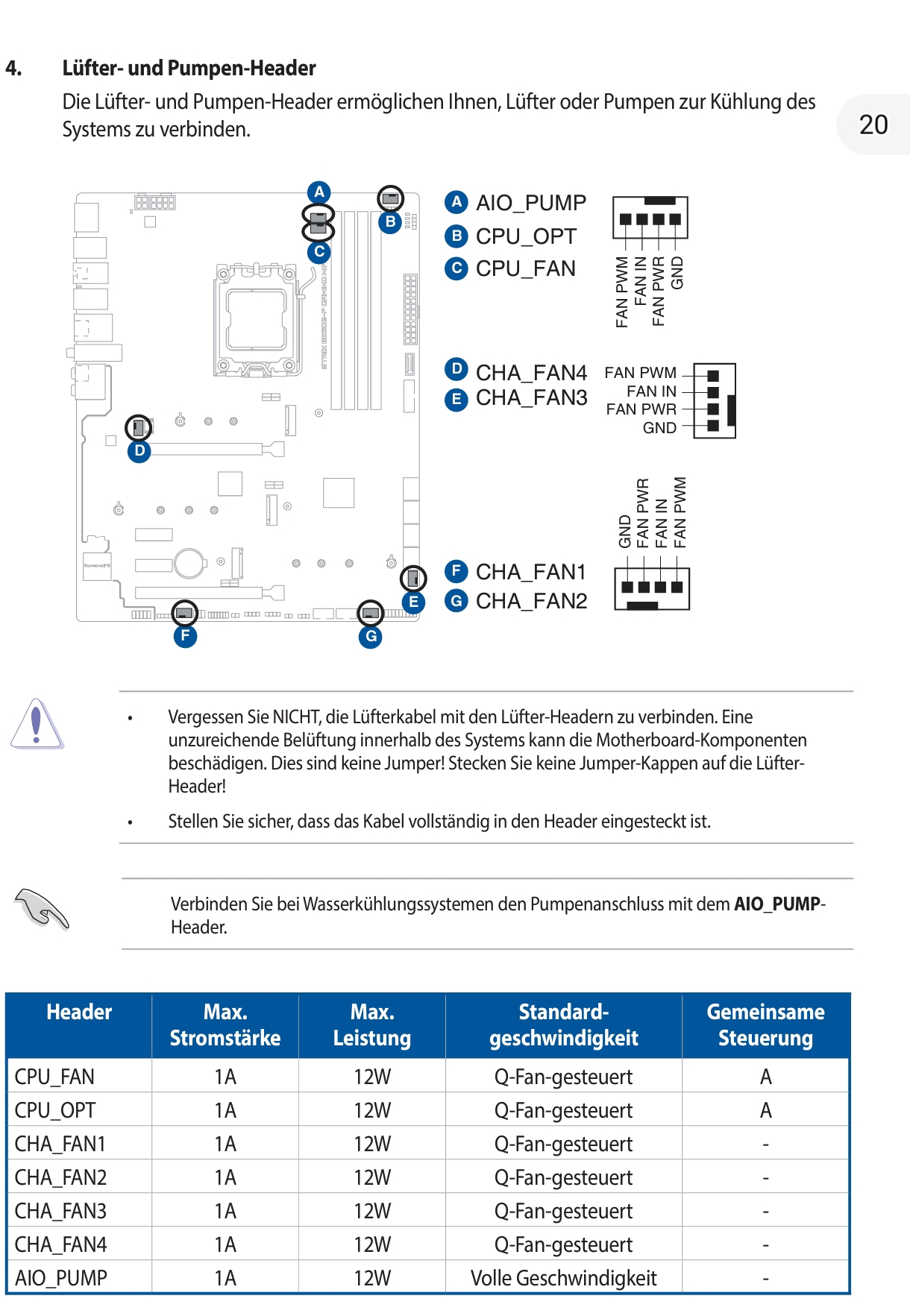 Eigentlich wollte ich alle ausblasendenen Lüfter (oben und hinten) ebenfalls unten anstecken, hat aber von der Kabellänge nicht gepasst. Deshalb habe ich diese zusammen mit dem CPU Lüfter per Daisy Chain angeschlossen.