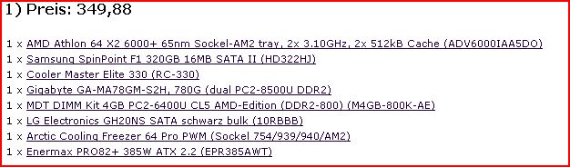 Da mich mein 500 mhz-PC aus DM-Zeiten mit 256MB Ram von Tag zu Tag mehr mit den Wartezeiten nervt (selbst beim Surfen oft 100% CPU-Auslastung), soll mal was Neues her. Ich hab auch keine Lust mehr, aufzurüsten und sehe auch keinen Sinn mehr darin.