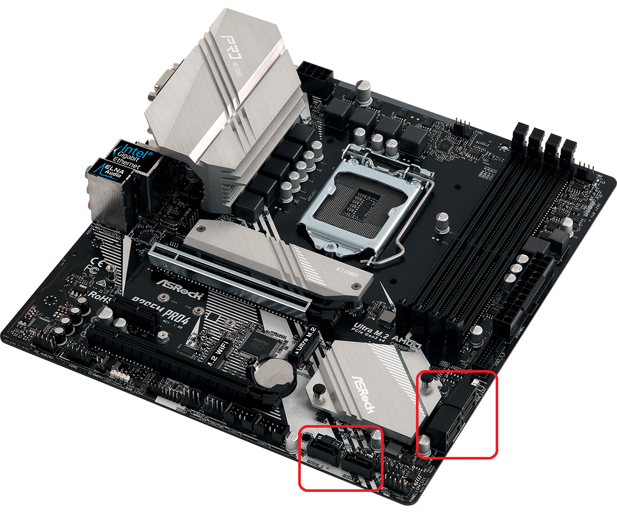 Ja, da sind auf deinem Foto die gewinkelten SATA-Anschlüsse hinter der Grafikkarte zu sehen, da steckt auch schon was drin. Und dann eben einen freien Anschluss suchen. 0 und 1 sind frei. Im Anhang noch ein Bild. Und eben Strom ans DVD-Laufwerk. Ist noch was unklar, dann frag.Kian schrieb:ASRock B365M Pro4