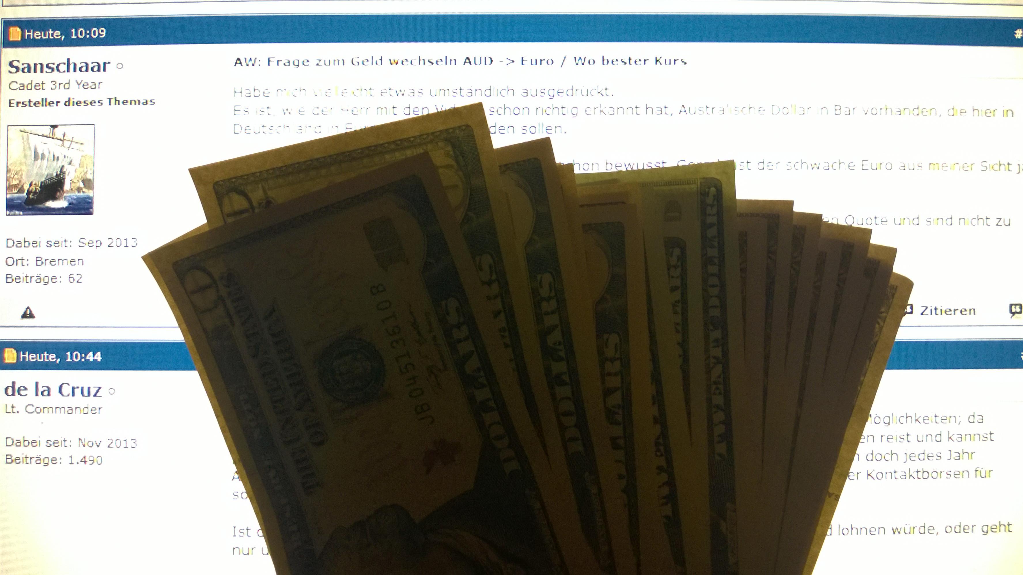 Frage zum Geld wechseln AUD -> Euro / Wo bester Kurs