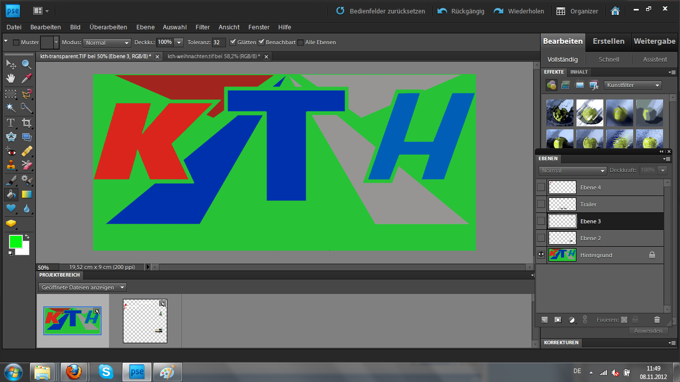 Ich bearbeite gerade unser Firmenlogo mit PS9 und hatte als Vorlage das Logo mit einem transparenten Hintergrund.