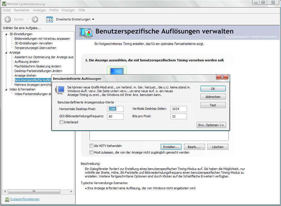 Hi Leute, ich wollte mir in der Nvidia Systemsteuerung ne neue Auflösugn erstellen. Komischweise konnte ich unter Vista 1200x800 wählen, das plötzlicherweise unter XP nicht mehr geht. Jetzt wollte ich eben die Auflösung von 1200x800 erstellen. Bloß ich weiß nicht was ich alles in den Feldern eingeben muss. Hab mal einen Screenshot hochgeladen.