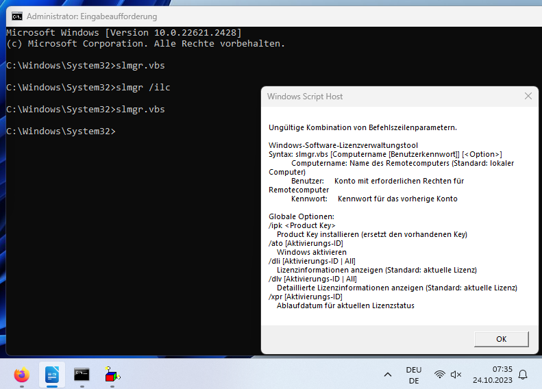 Siehe Bild slmgr dti