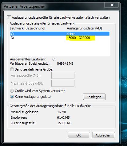 Ich habe mal eine frage ich habe im Pc zwei Sata platten drinne und nutze nur eine und das ist die mit Windows die andere 500 GB ist leer und läuft einfach nur mit.Ich habe dann bei Windows die auslagerungsdatei gesehen und habe die mal übertrieben eingestellt und wollte mal fragen ob das geht weil die Platte nicht genutzt wird und somit dafür gut wäre.Wenn das falsch ist was ich gemacht habe korrigiert mich bitte.Foto ist im anhang.
