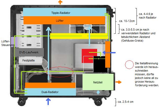 Ich plane einen neuen PC mit Wasserkühlung zu bauen. Ich habe mich dazu ausführlich mit dem Thema beschäftigt und so ziemlich jedes Review (Radiatoren, CPU-Kühler, Lüfter, Netzteile, Gehäuse, Grafikkarten, usw.) und jede FAQ (auch die von Computer Base, sehr gut gemacht) durchgearbeitet und habe das System stetig verbessert und ausgefeilt bis ich an einen Punkt kam, an dem mir keine FAQ mehr weiter helfen konnte.
