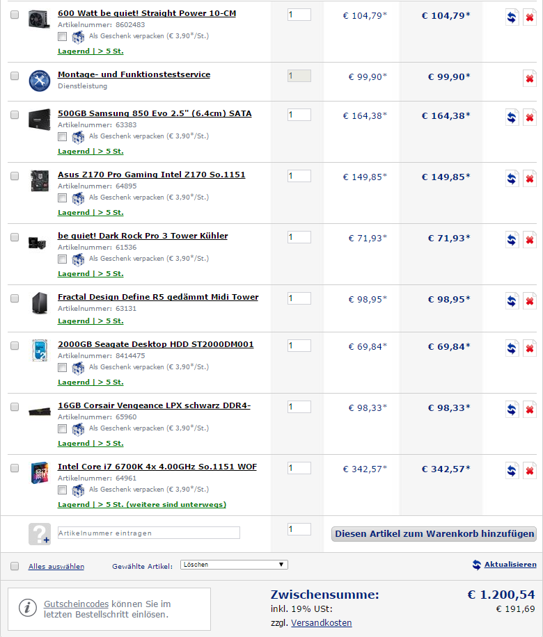 in ca. einen Monat kaufe ich mir meinen neuen PC, und habe mir auf mindfactory Teile ausgesucht. Bevor ich mir die Teile kaufe würde ich gerne nachfragen ob es ein guter Build ist, und falls nicht, welche Teile ich austauschen sollte.