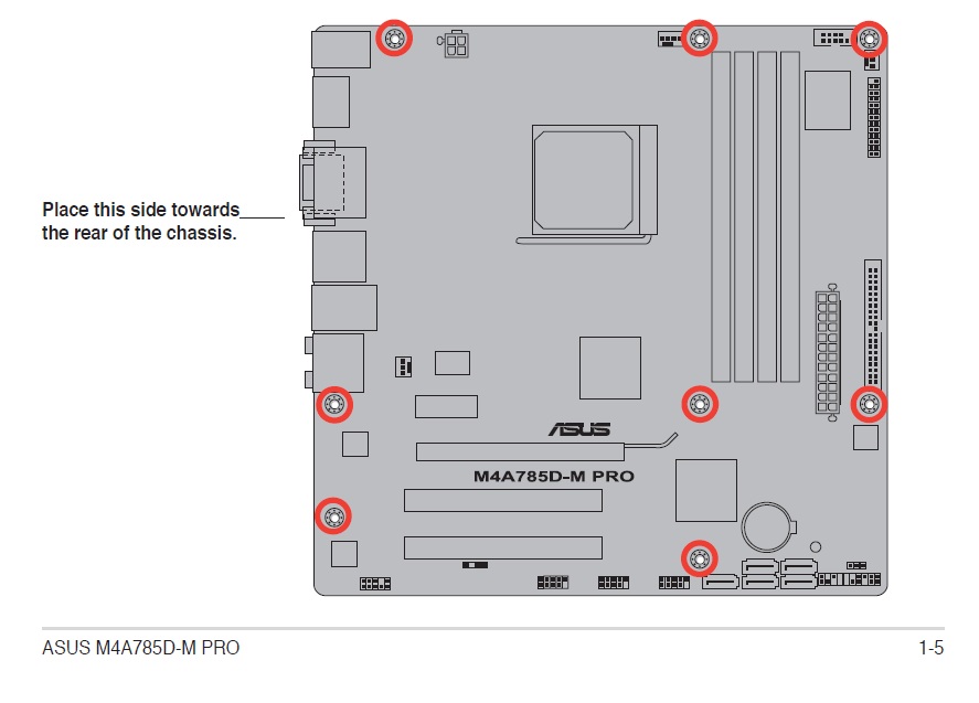 1) Passt mein Asus M4A785D-M Pro mATX Board mit alles Anschraubbohrungen auf die Sockel des Gehäuses?