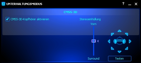 für meine Ohren noch immer unübertroffen, handelt sich um eine vollwertige Version (CMSS in Hardware, keine Software-Emulierung), für Kopfhörer m.E. sehr empfehlenswert. Mit einer Teufel CEM oder einer beliebigen analogen 5.1-Anlage natürlich ebenfalls wunderbar einstellbar (siehe Anhang).