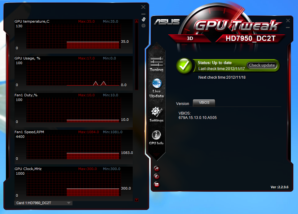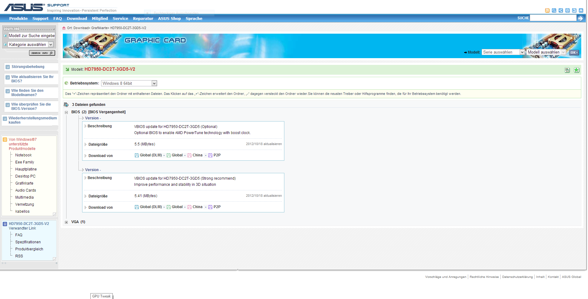 Habe auch davon wirklich keine Ahnung, ist meine erste " High End " Karte. Auf der ASUS Support Seite wurden ein als dringend und ein als optional betitelter vBIOS Update angeboten, wenn ich diese jedoch " installieren " will, bzw. mein vBIOS flashen will, falls man das so sagt, kommt eine Fehlermeldung. Werde alles in den Anhang packen.