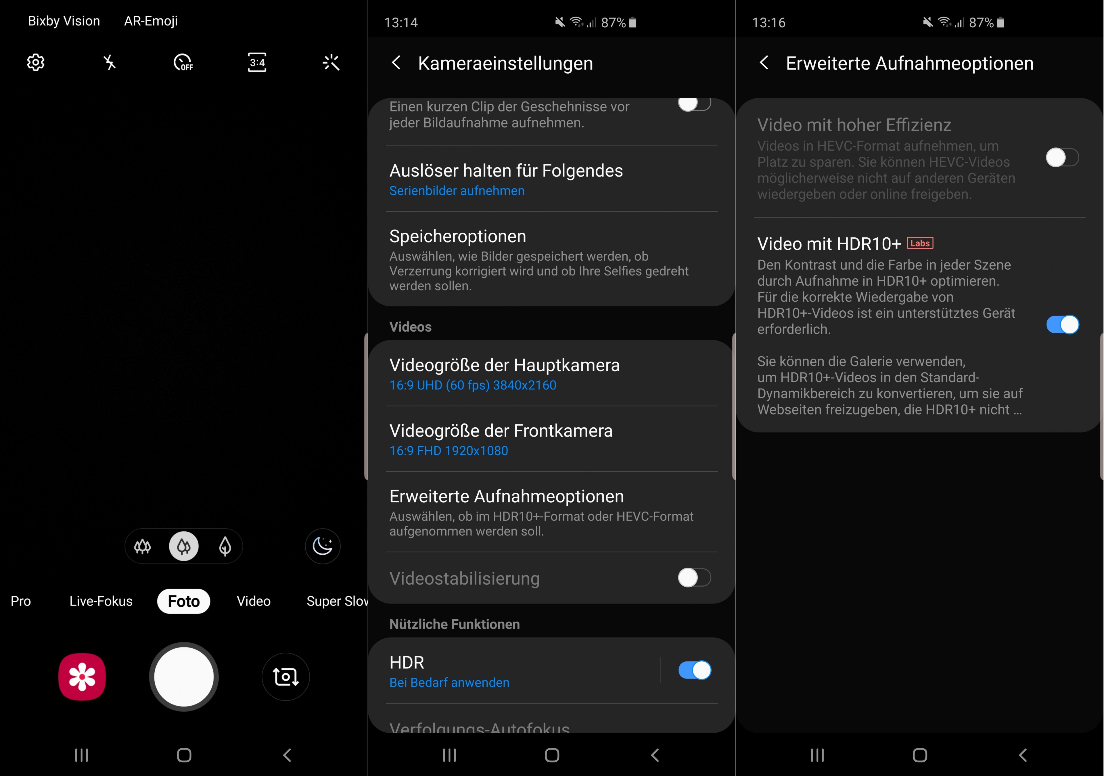 1)Qualitätseinstellungen am Samsung Galaxy S10: