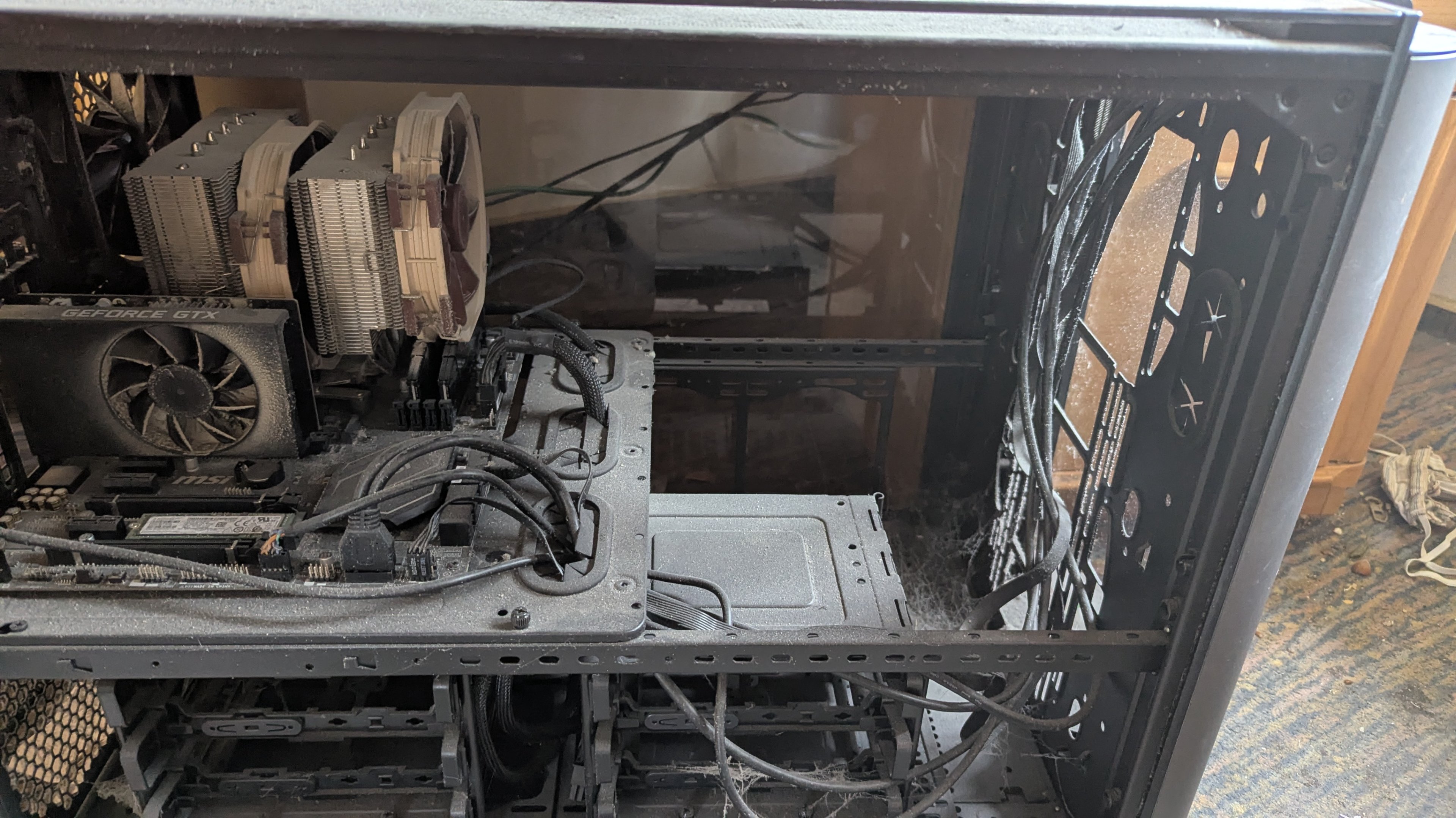 Ist der PC noch zu retten. Also jeden Staub werde ich nicht raus kriegen. Ich sehe da wirklich schwarz . Das Netzteil bin ich mir nicht sicher und CPU Kühler und Lüfter der GPU. Das werde ich nicht alles weg kriegen . Kann nur hoffen das das ganze noch lebt . Naja ja ich habe den PC vernachlässigt . Ich habe ihm grunde genommen mal geschaut ob alles in Ordnung ist undal auf gehabt als der CPU Kühler so ratterte . Ich habe ihn also 5 Jahre und richtig sauber gemacht noch nie . Ich müsste mal schauen ob der andere PC in Ordnung ist oder nicht. Er ist auf jedenfall leise .