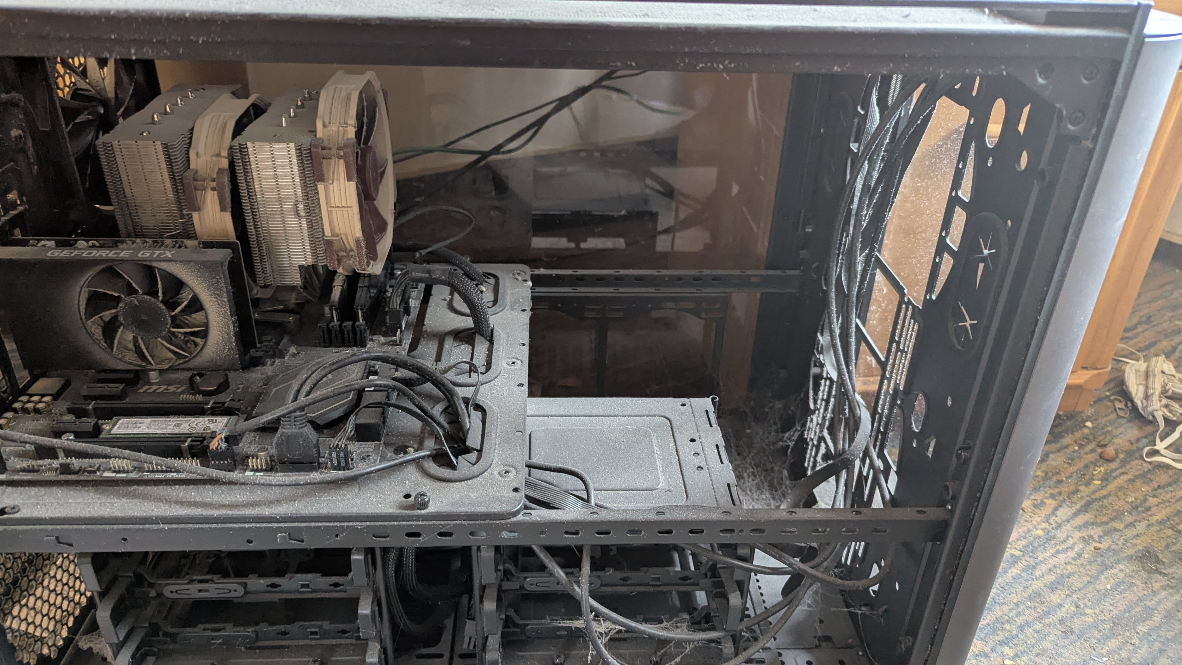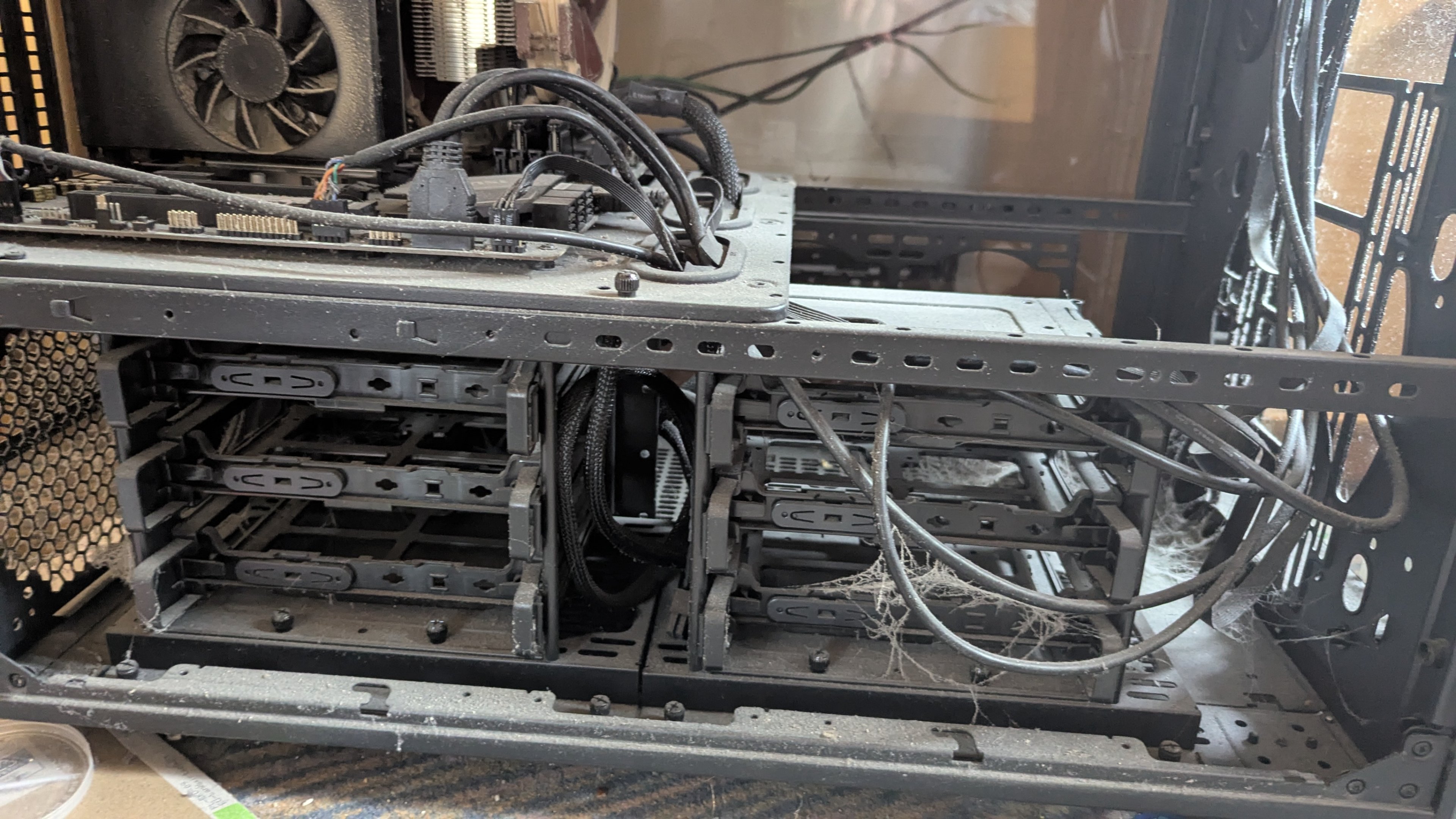 Ok ich bin zwar bald nicht mehr daheim aber später kann ich gerne Bilder machen. Halb offen ist der PC ja eh schon. Schimmel habe ich nicht gesehen gehabt. Bilder kann ich gerne machen .unter dem Schreibtisch scheint es wohl genügend warme Luft zirlulationen gegeben zu haben ,wo dazu gesorgt hatte das da drunter kein Schimmel sich gebildet hatte .Es ist nur Staub und spinnenweben. Mein Schlafzimmer neigte ja zu schnellen verstauben . Mich wundert also die Staubschicht im inneren nicht. Ist ganz normal wenn man es nicht so genau nimmt mit enstauben bzw nicht so oft den PC sauber macht so wie ich .