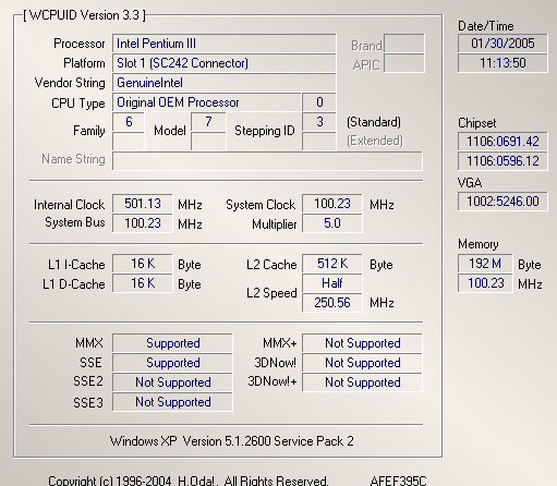 CPU: Pentium 3, 500Mhz, Slot1, 100Mhz FSB