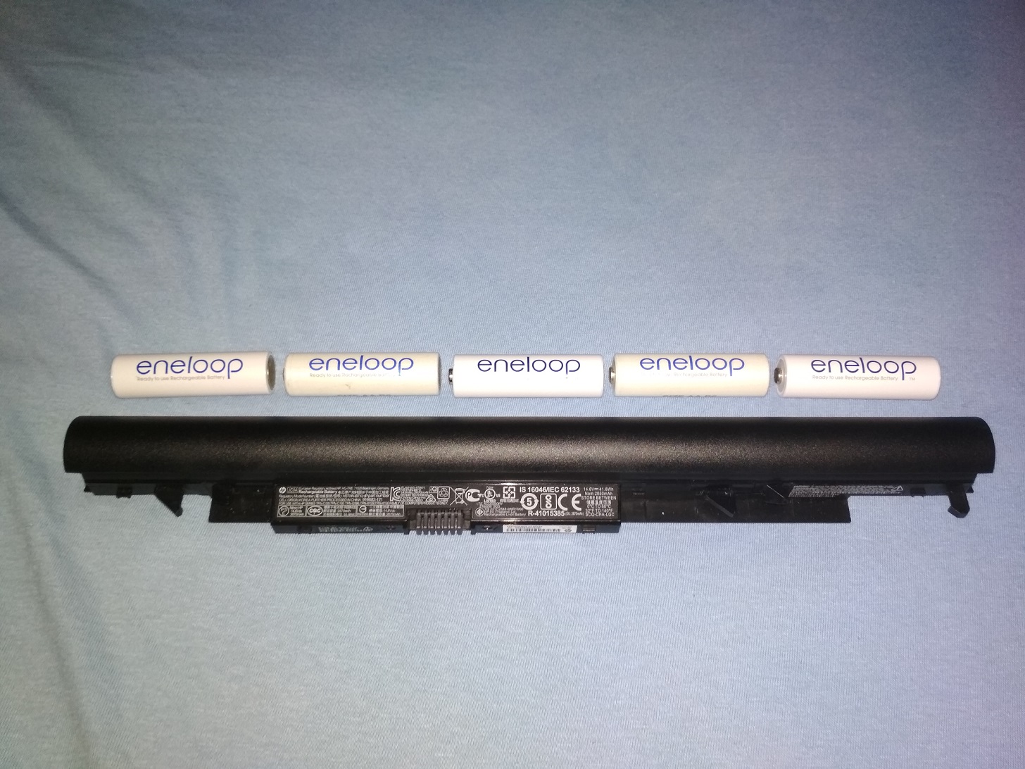 Ich habe mir vor ein paar Monaten besagten Laptop gekauft und habe mir letztens zum ersten Mal den Akku etwas genauer angeschaut und dabei ist mir aufgefallen, dass seine Dimensionen und Form ziemlich danach aussehen, als ob sich darin einfach 4 oder 5 AA-Zellen befinden.