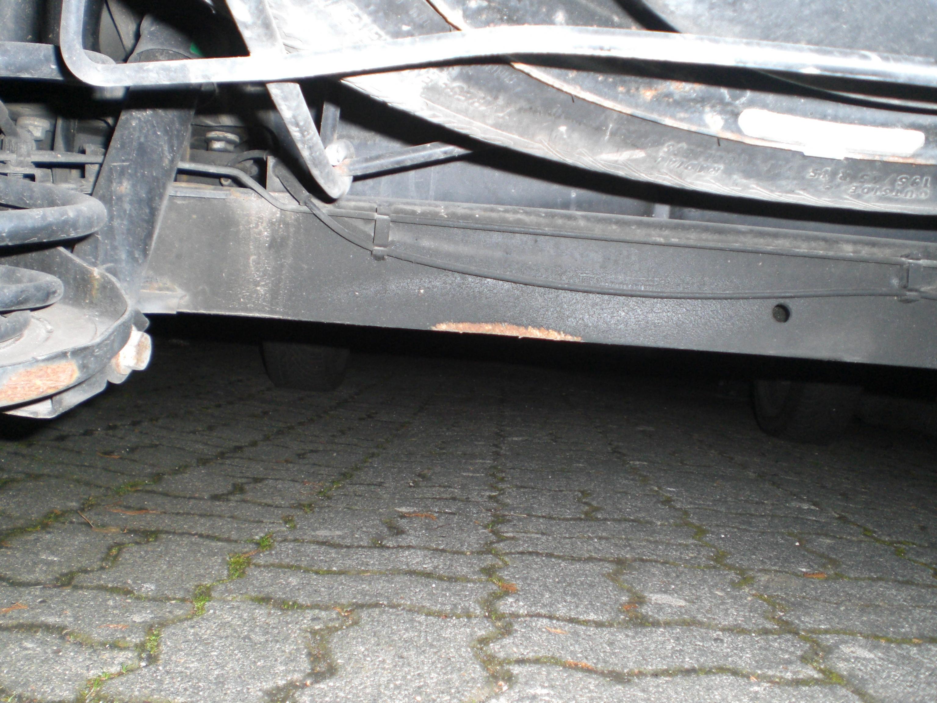 Die Karre ist gebraucht; 3 Jahre alt mit 30 tkm. Der Händler hatte sie in Zahlung genommen und danach an uns verkauft. Mit frischem TÜV. Der Schaden hätte also definitiv auffallen müssen. Mir wäre er aufgefallen, wenn ich das Auto vor dem Kauf auf der Bühne gehabt hätte. Aber wie das bei den Autohäusern so ist, war natürlich grad nix frei und das einwandfreie unfallfreie Auto braucht man ja auch nicht von unten anzuschauen.