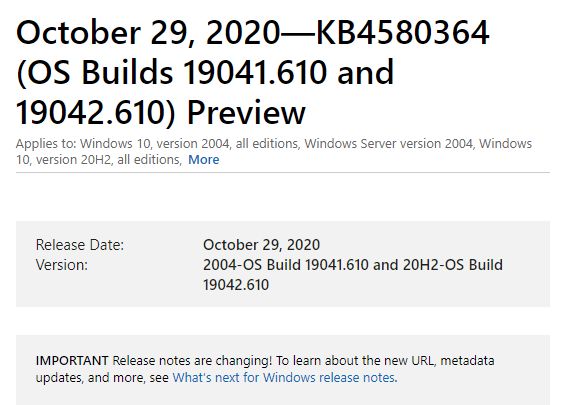 October 20, 2020—KB4580386 (OS Builds 18362.1171 and 18363.1171) Preview