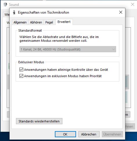 Sowohl beim Kopfhörerverstärker als auch beim Mikrofon selbst (siehe Anhang) ist nur 24-bit wählbar!? Normal?