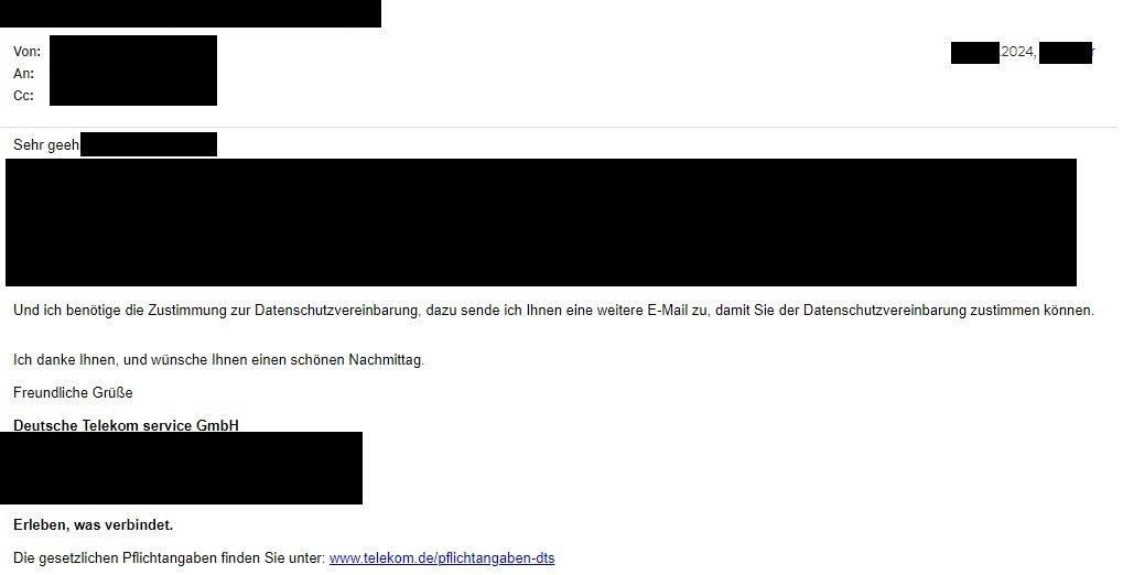 ich habe über einen Reseller (ein autorisierter Internet-Vertragspartner der Telekom, ähnlich wie z.B. Check24,) den neuen Tarif Glasfaser 600 bestellt. Heute, am Freitag, den 23. August, war ein Telekom-Techniker bei mir, um mir unbekannte Arbeiten an der Anschlussadresse durchzuführen.