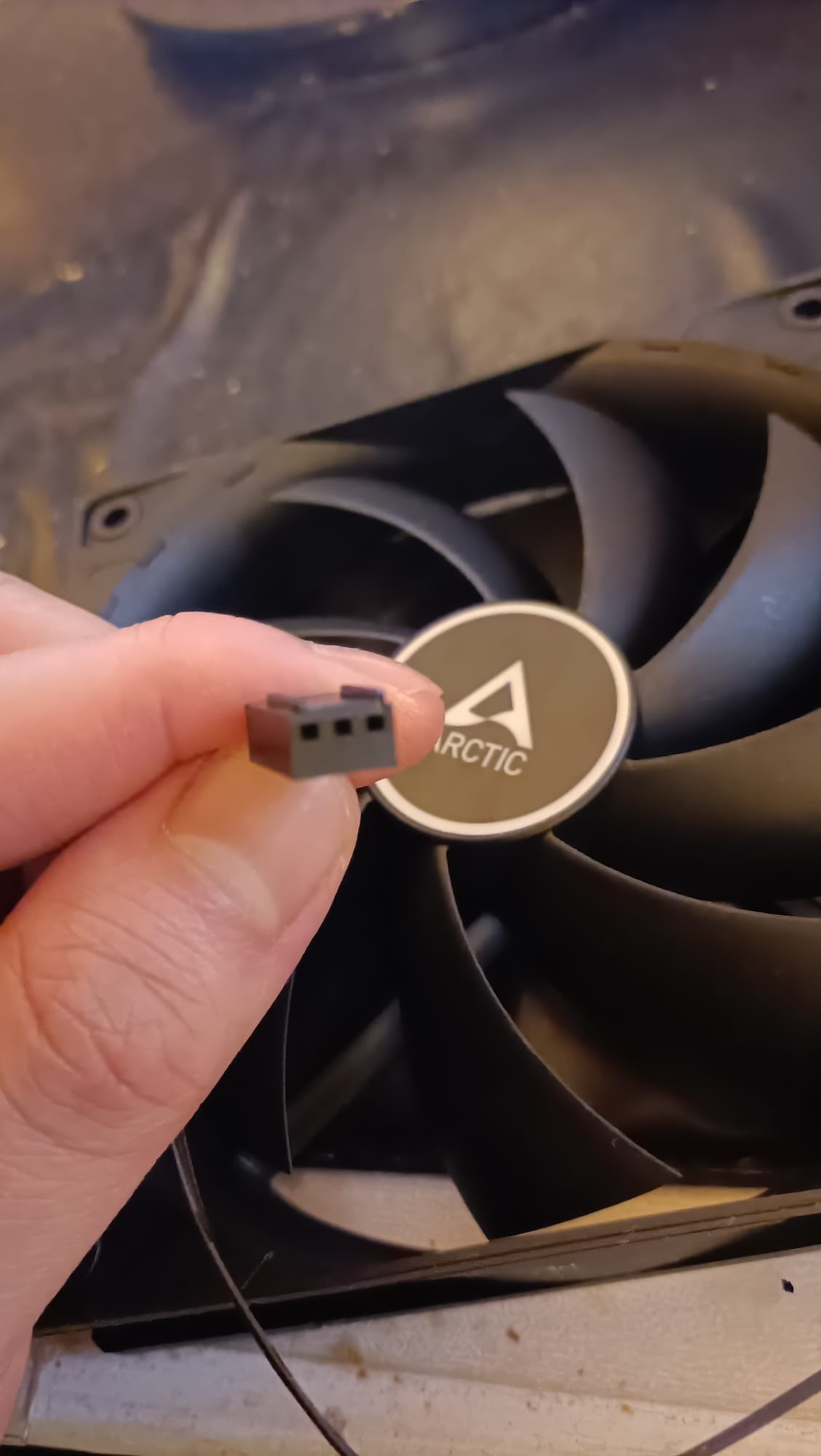 Dafür habe ich, wie hier empfohlen, 2x 120mm Artic-Lüfter (passt wohl nur eine) und 1,6mm breite x 50mm lange (sind zu kurz, kann ich aber zur Verlängerung aneinanderstecken) Kabelbinder besorgt.