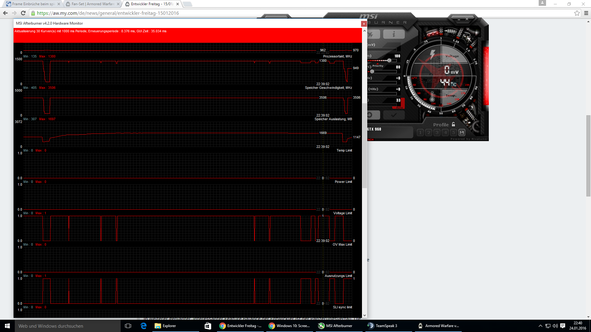 ich habe bei dem Spiel Armored Warfare und WOT beim spielen frame Einbrüche.