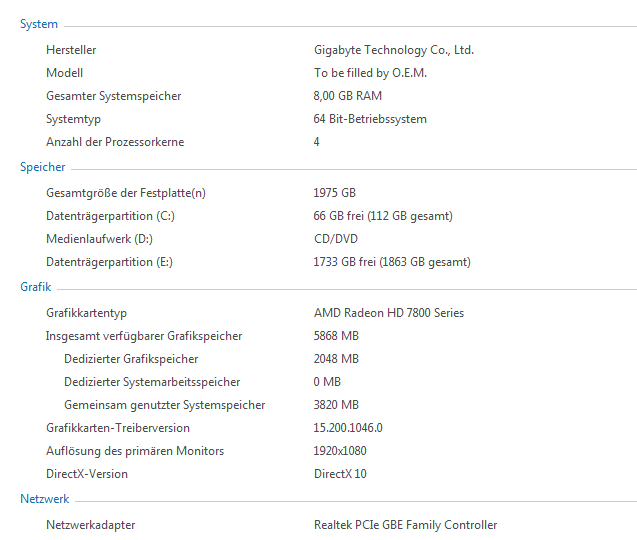 So Rechner umgebaut, Betriebssystem musste ich ja nicht neuinstallieren, werde ich aber wohl trotzdem noch machen.