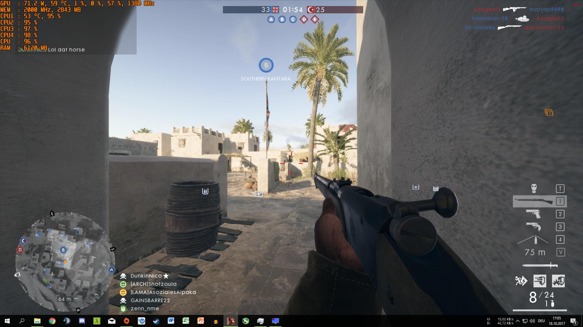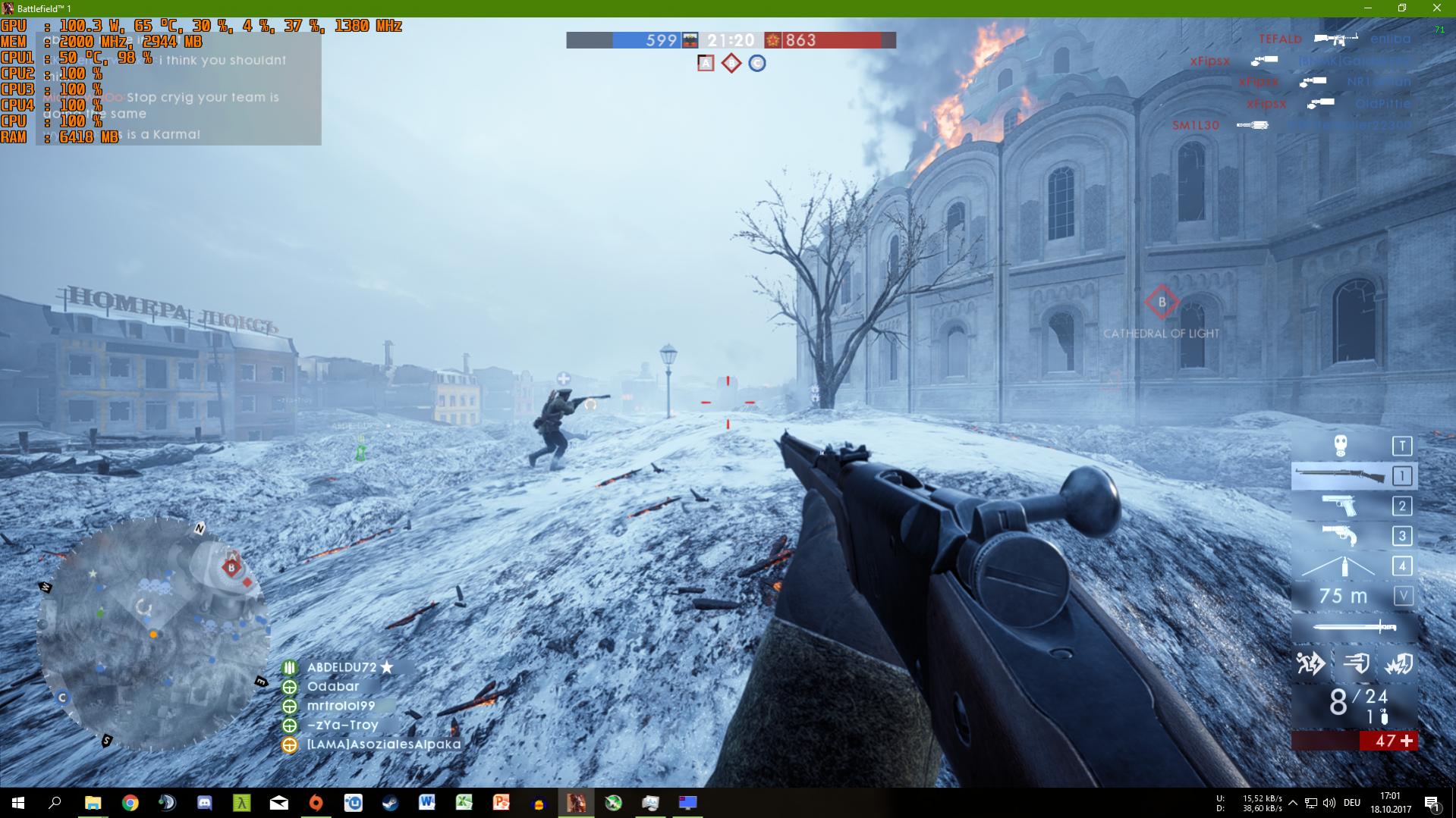 Habe seit 1 Woche das Problem von Framedrops in Spielen allgemein. Besonders stark merke ich es in Battlefield 1. Gerade beim spawnen in die Spielwelt habe ich reproduzierbare FPS-Drops.Damit meine ich den Moment kurz nachdem und während man bei einer Flagge, Squadmate etc. gespawnt ist. Teilweise habe ich nur 4 FPS.
