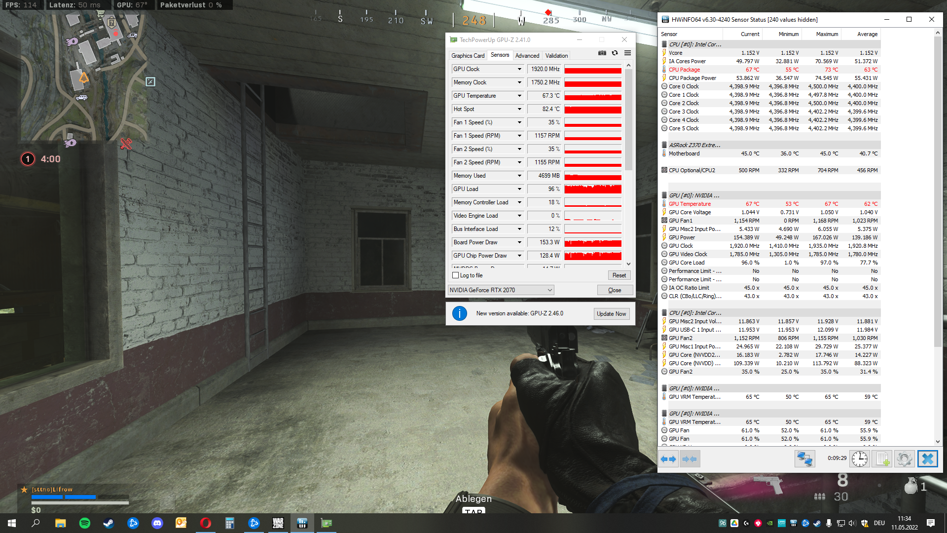 Beim zweiten Screenshot habe ich Discord im Hintergrund laufen. Das kostet mich ca. 20fps.