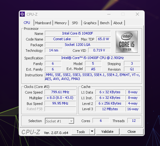 - Prozessor (CPU): Intel(R) Core(TM) i5-10400F CPU @ 2.90GHz, 2901 MHz, 6 Kern(e), 12 logische(r) Prozessor(en)