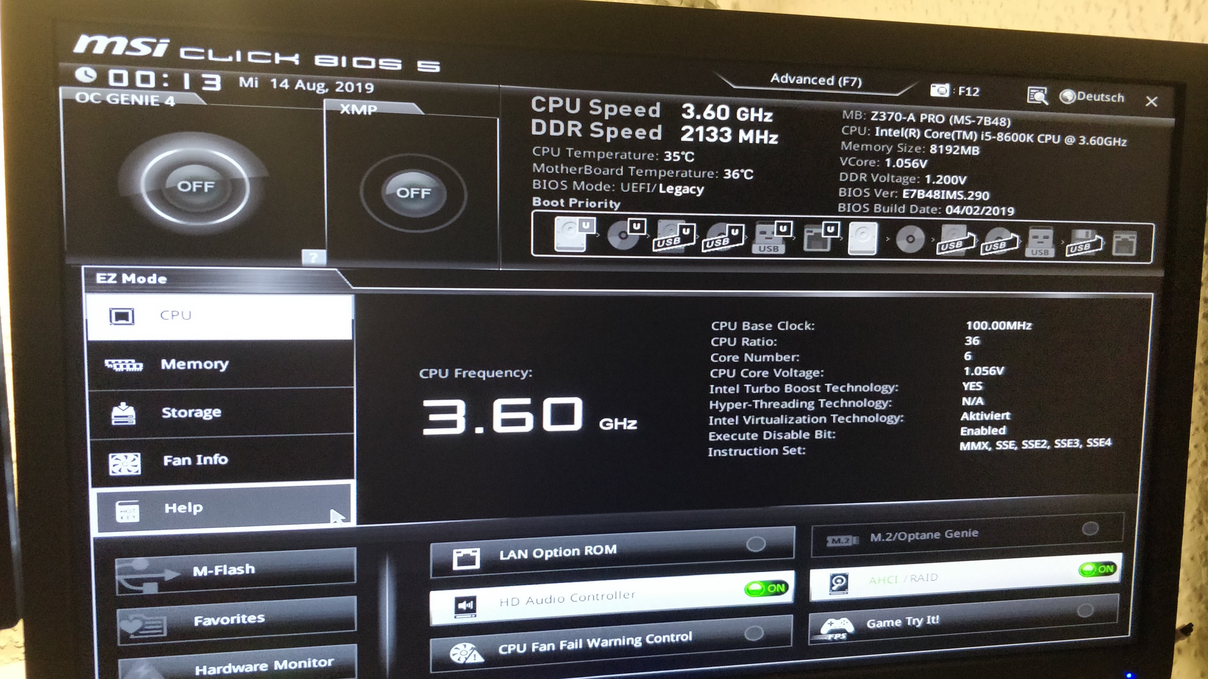 Treiber sind alle aktuell und das BIOS auch. Entstaubt ist es und das Gehäuse steht offen.