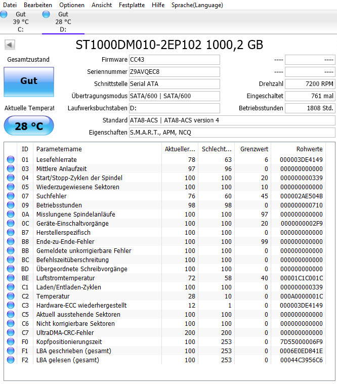 Das Zurücksetzen habe ich ca. 3-mal gemacht, mit verschiedenen Treibern ausprobiert, Spiele auf die Hauptfestplatte etc.