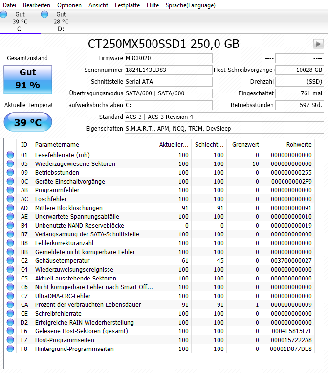 - 250GB Crucial MX500 2.5" (6.4cm) SATA 6Gb/s 3D-NAND TLC (CT250MX500SSD1)