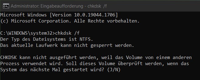 Checkdisk ist im System32 Ordner, also wenn du cmd startest verändere den Pfad nicht!rongador schrieb:So, über "cmd" mal chkdsk /f ausprobiert. Da kam dann die folgende Meldung: