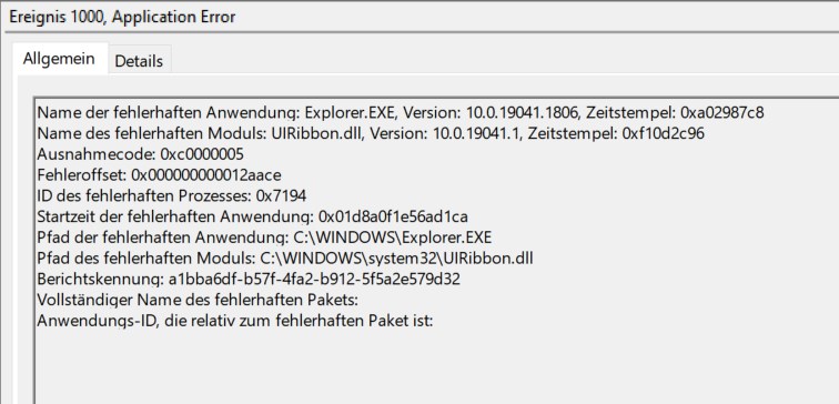 - 18.05.2022: explorer.exe Crash (explorerframe.dll), zwei Mal direkt hintereinander