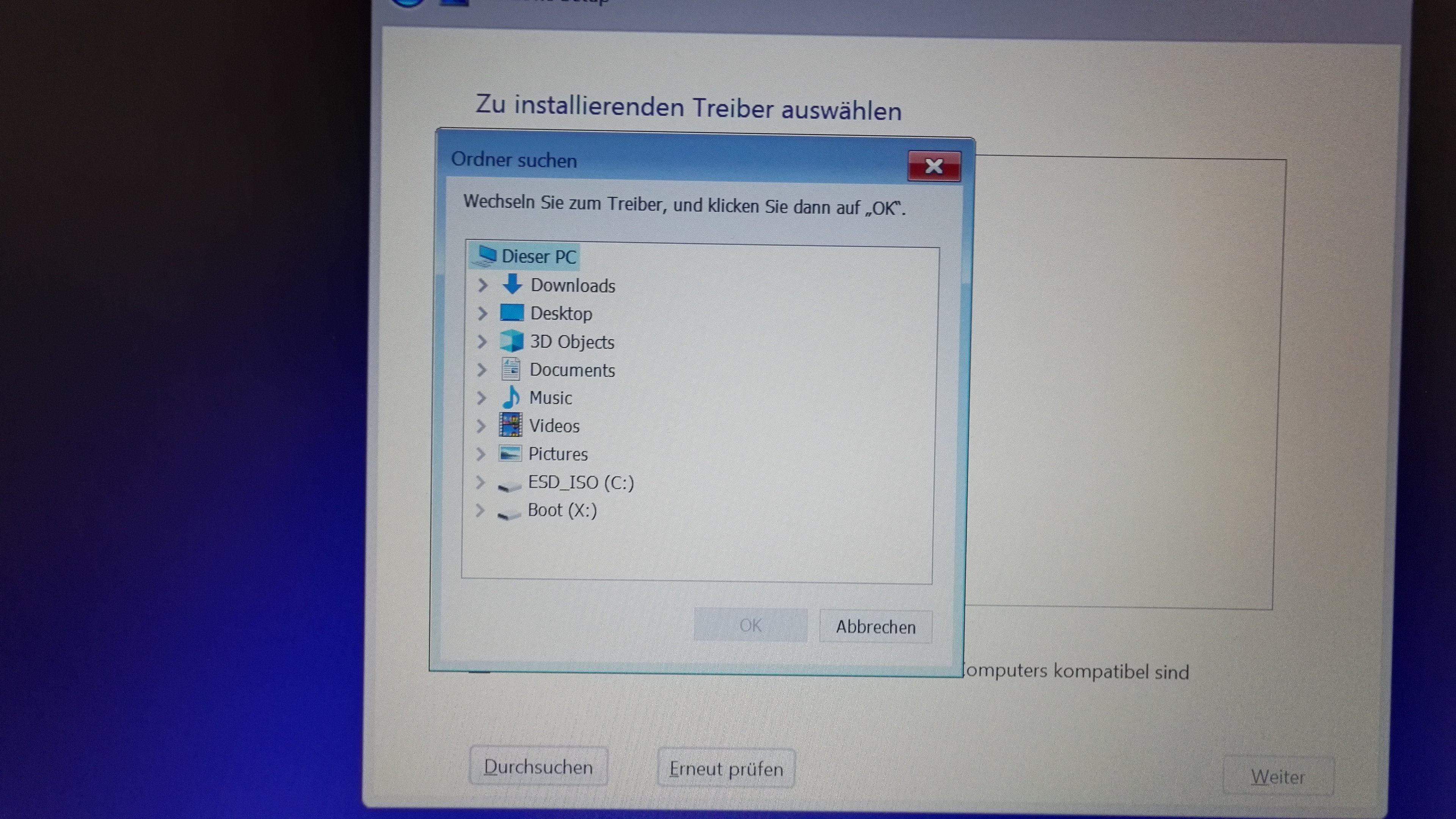 - bei „“wo möchten Sie Windows installieren“ wird keine Festplatte angezeigt. Darunter steht: Es wurden keine Laufwerke gefunden. Klicken Sie auf „Treiber laden“ um einen Speichertreiber abzurufen. Nach vielen Versuchen habe ich alle Treiber von HP auf den Stick gepackt, es lässt sich aber keiner installieren.
