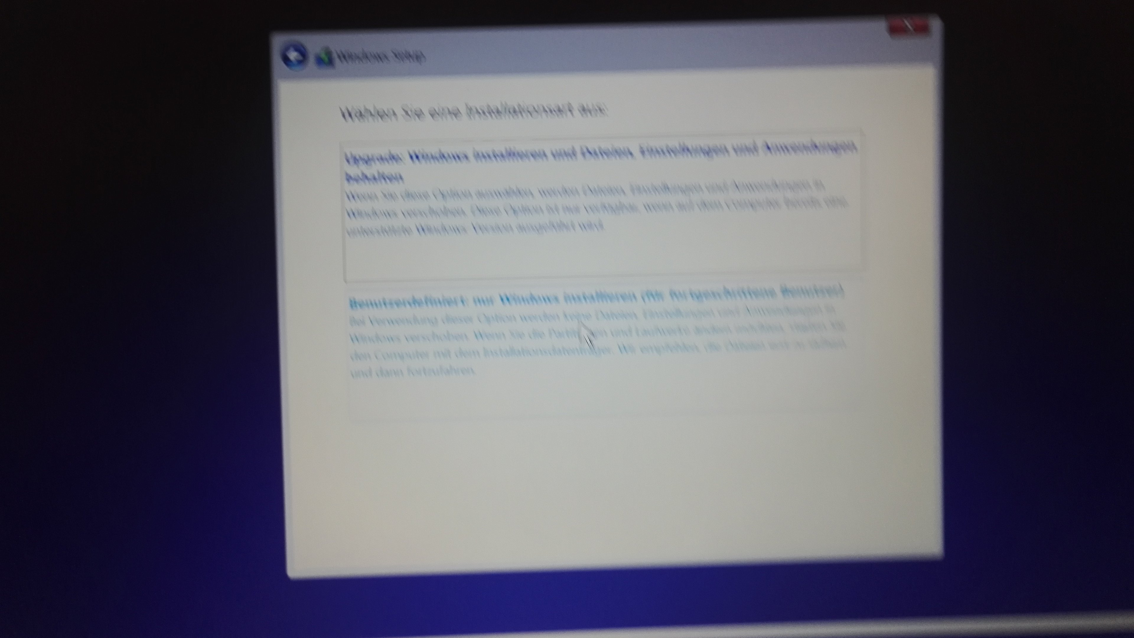- klick auf Benutzerdefiniert: nur Windows installieren (für fortgeschrittene Benutzer)