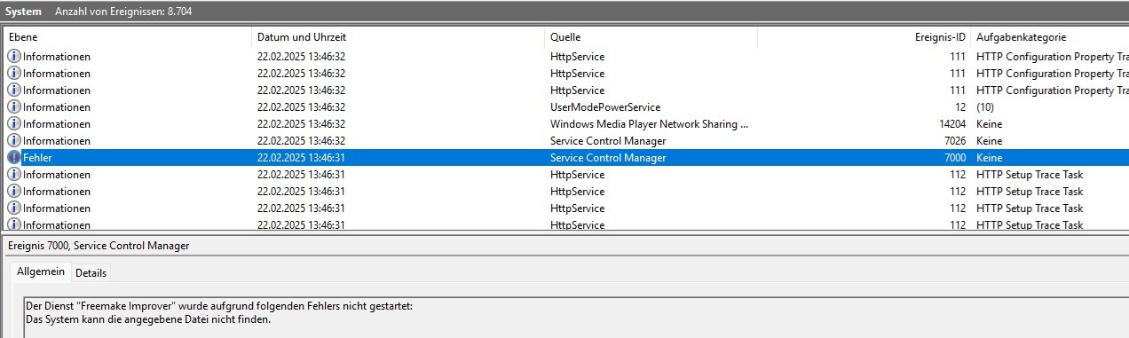 Wegen einer anderen Sache bin ich im Eventmanager gewesen und finde nun trotzdem noch einen Fehler (siehe Anhang) vom Freemake Improver.