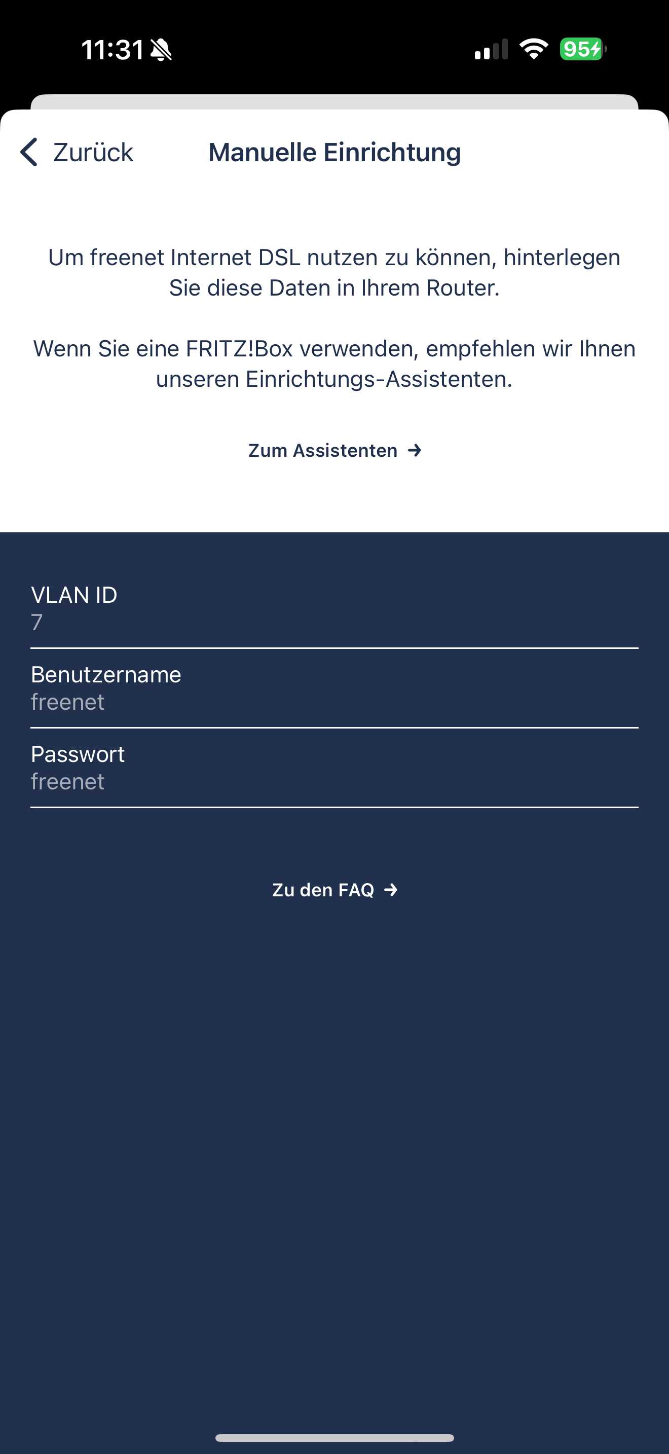Beim einrichten der Zugangsdaten kommt halt schon direkt der Hinweis, Benutzername und Kennwort seien nicht korrekt.