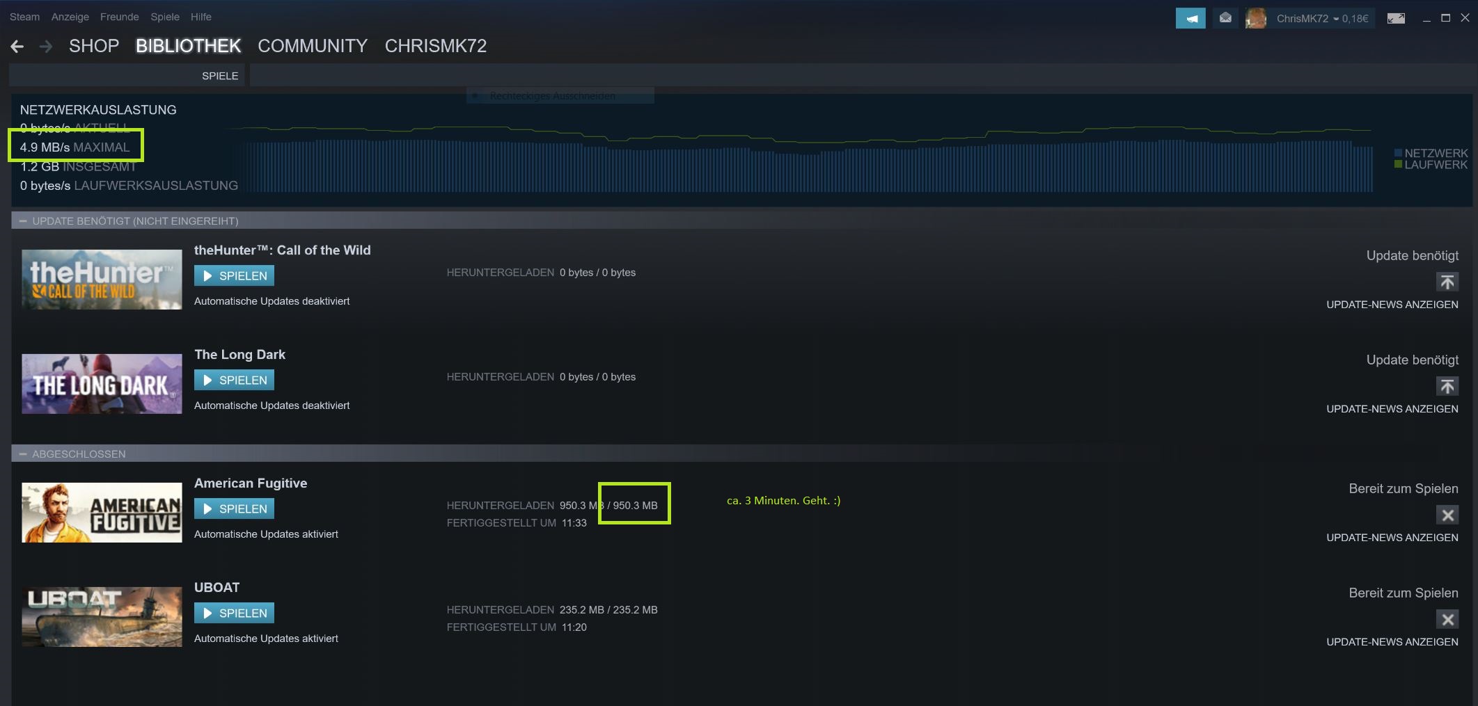 Ging erstaunlich schnell. Hatte irgendwie gedacht, der lädt jetzt ne halbe Stunde/Stunde, oder so, weil über mobil hotspot über mein Smartphone verbunden, aber nee ... das Spiel laden(knapp 1GB) hat ca. 3 Minuten gedauert.