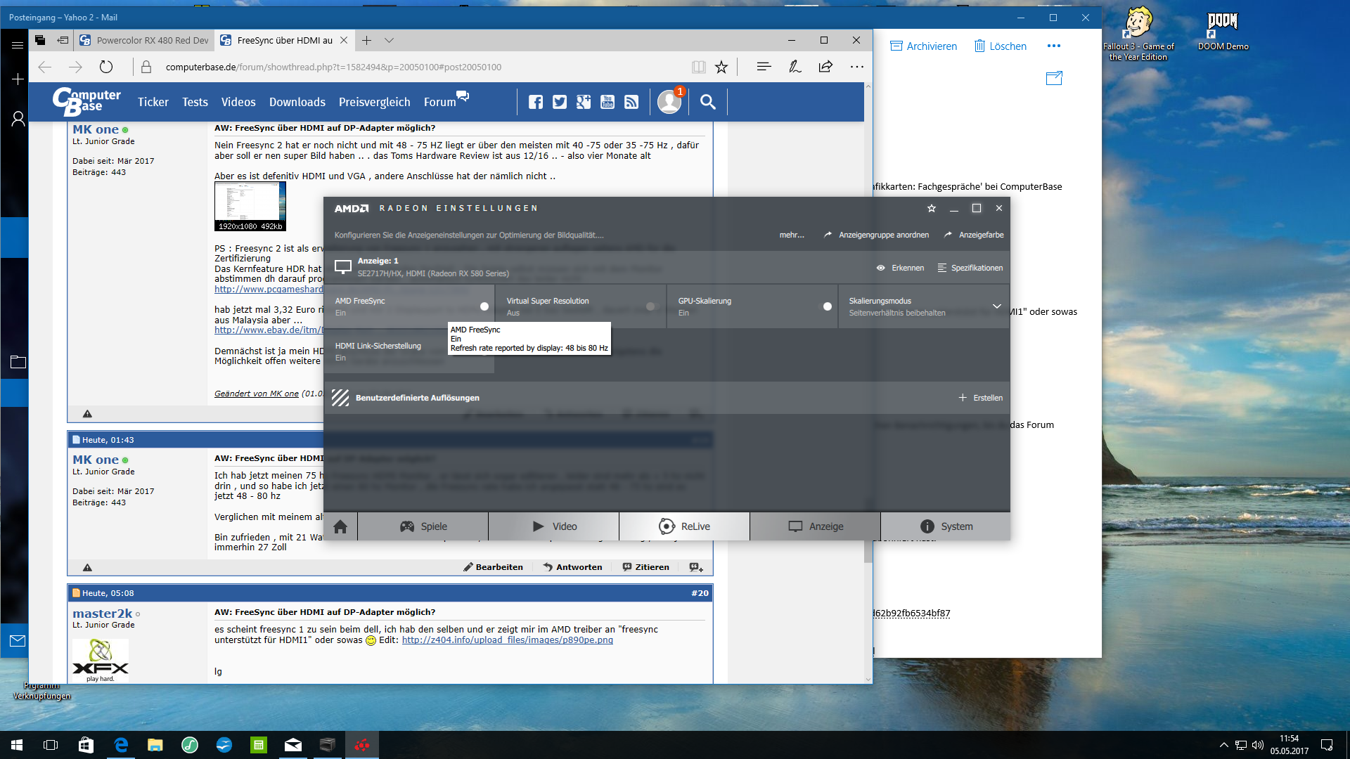 auf dem screenshot erkennt man das Freesync Fenster